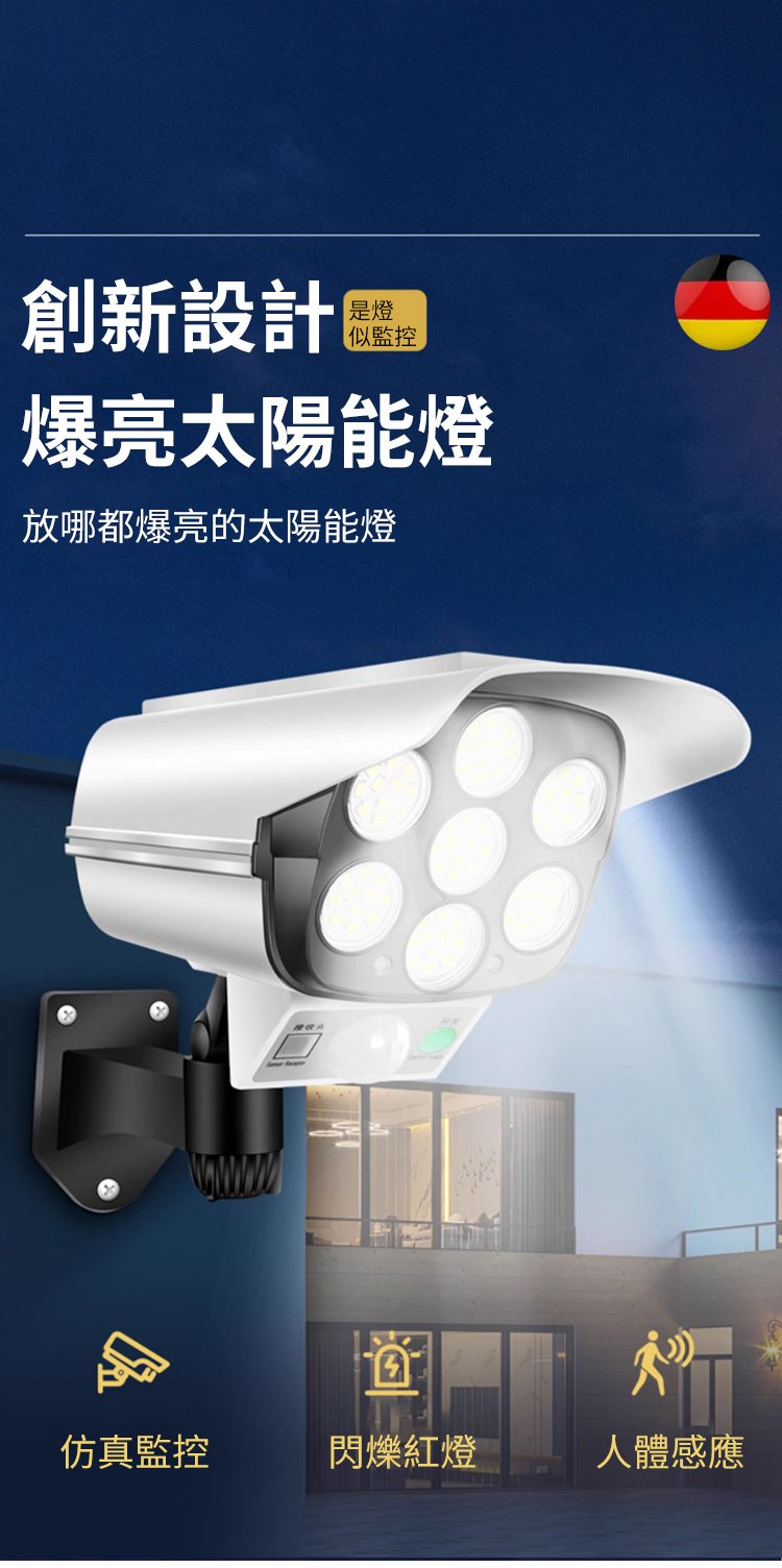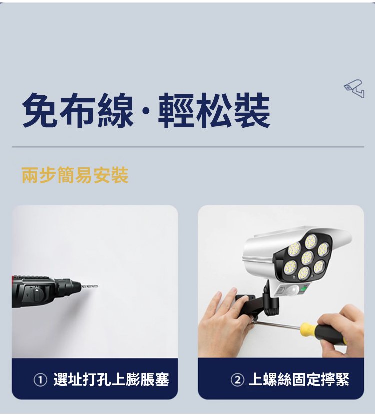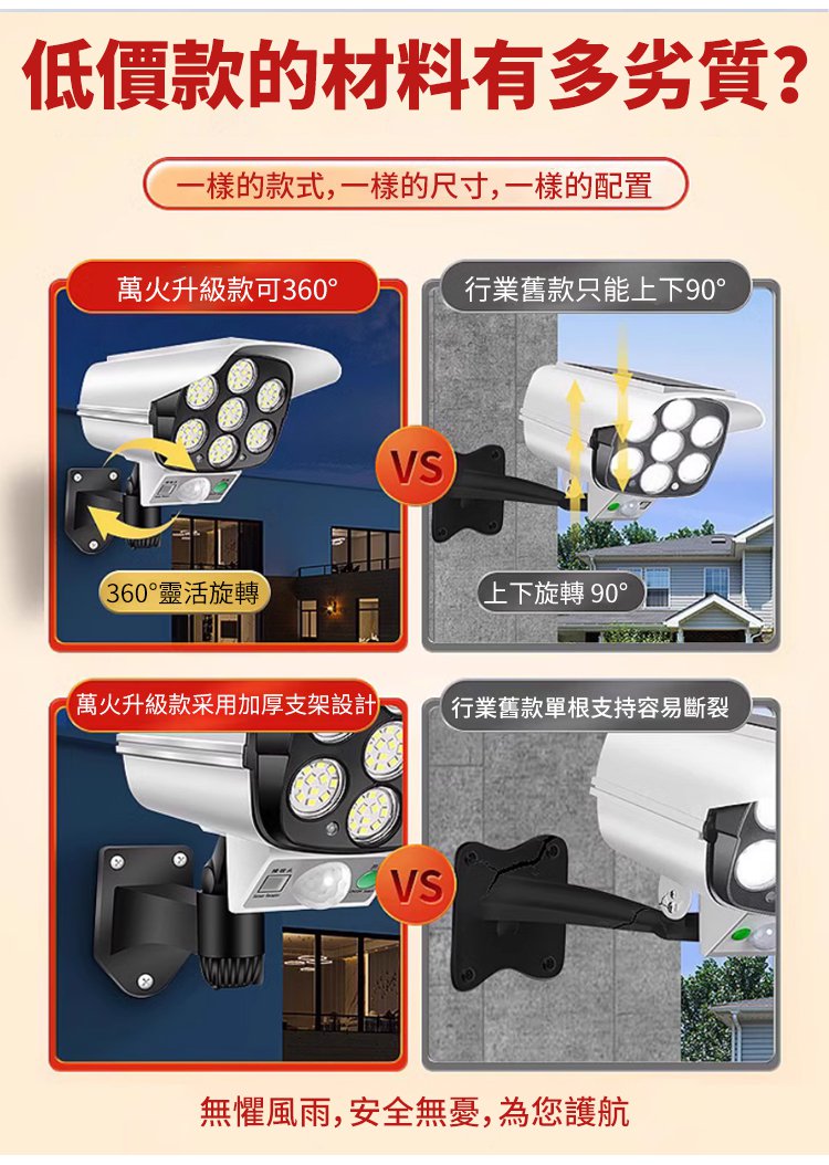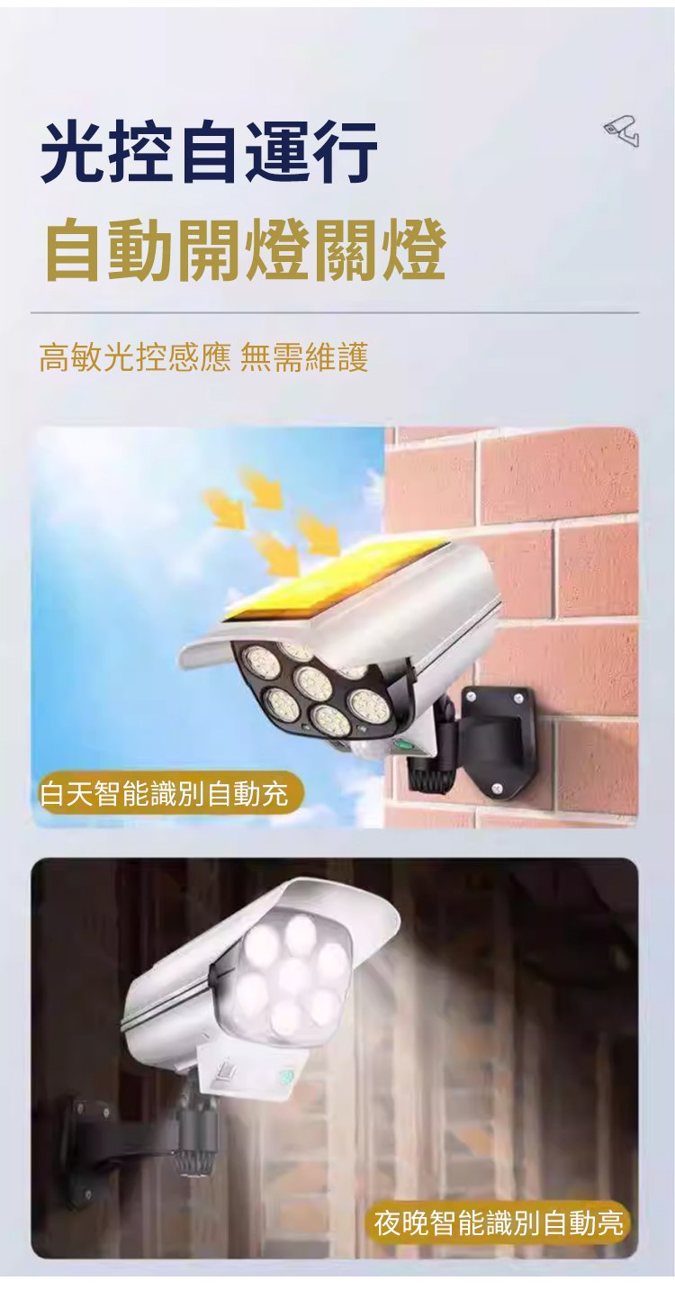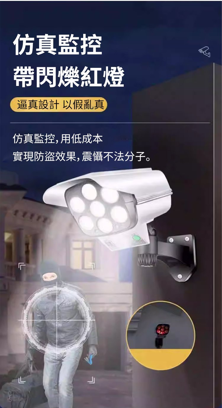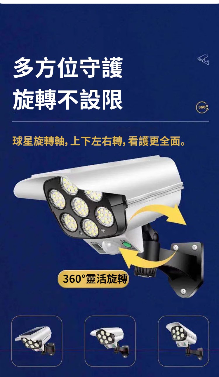 【人來秒亮・全天候守護】全新升級太陽能人體感應監控燈?360°自由旋轉無死角|高仿真攝像頭外型有效嚇阻宵小|8米紅外線感應自動亮燈|陰雨天照樣亮|免插電免佈線一裝即用|庭院、門口、停車場、工廠、農場通通適用|限時 80% OFF 搶購中